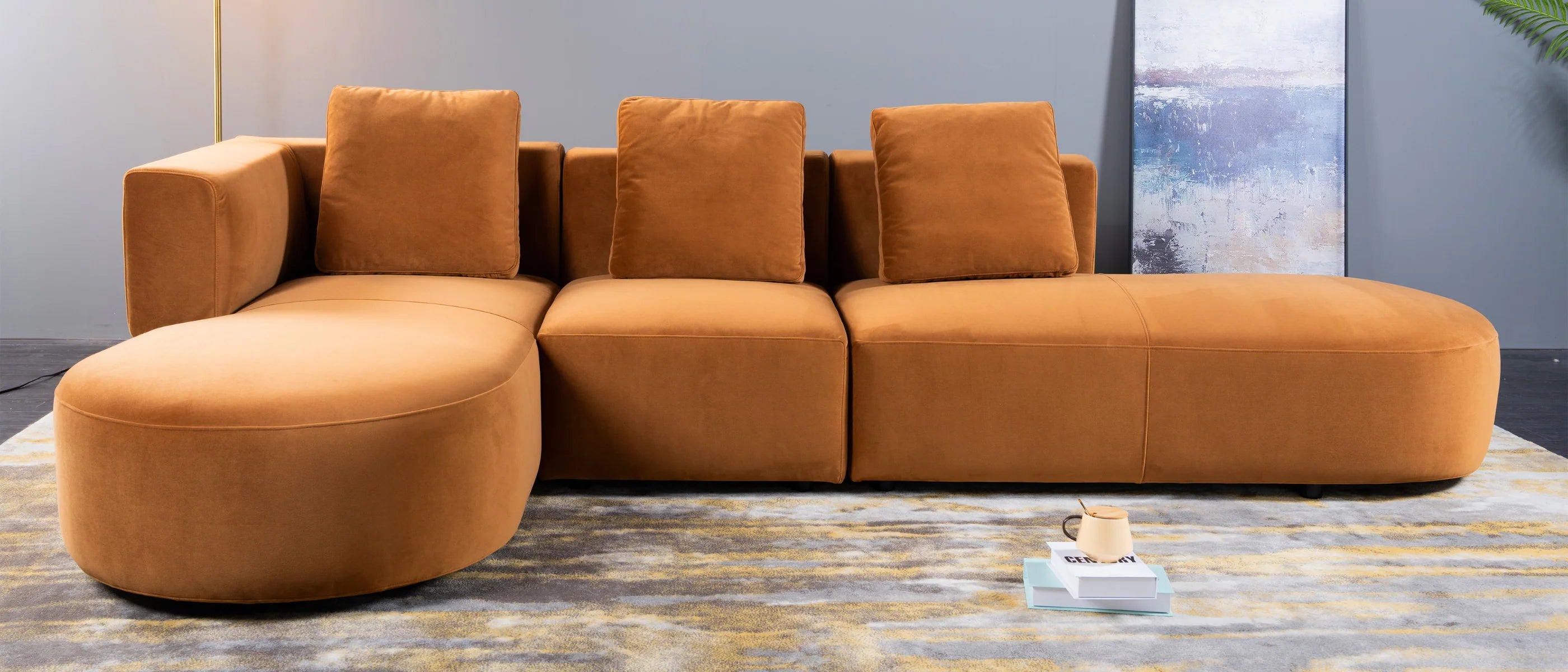 Selma Velvet Upholstered Crescent Arm Sofa Rust