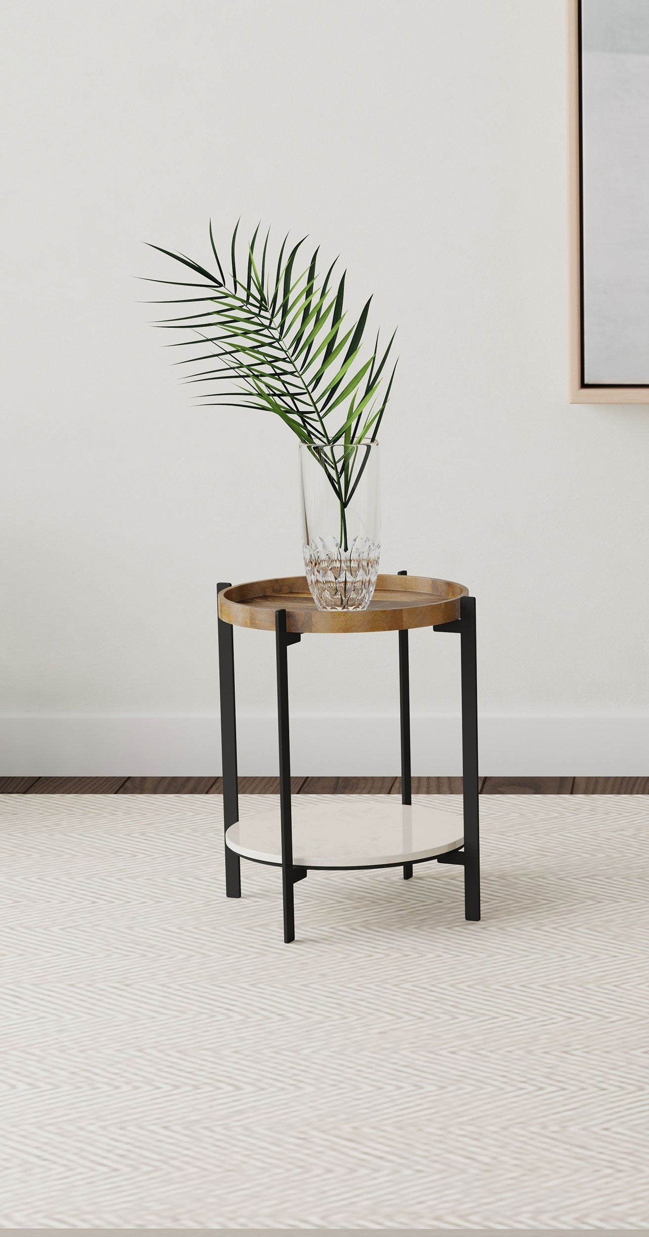 Adhvik Round End Side Table Marble Shelf Natural and Black