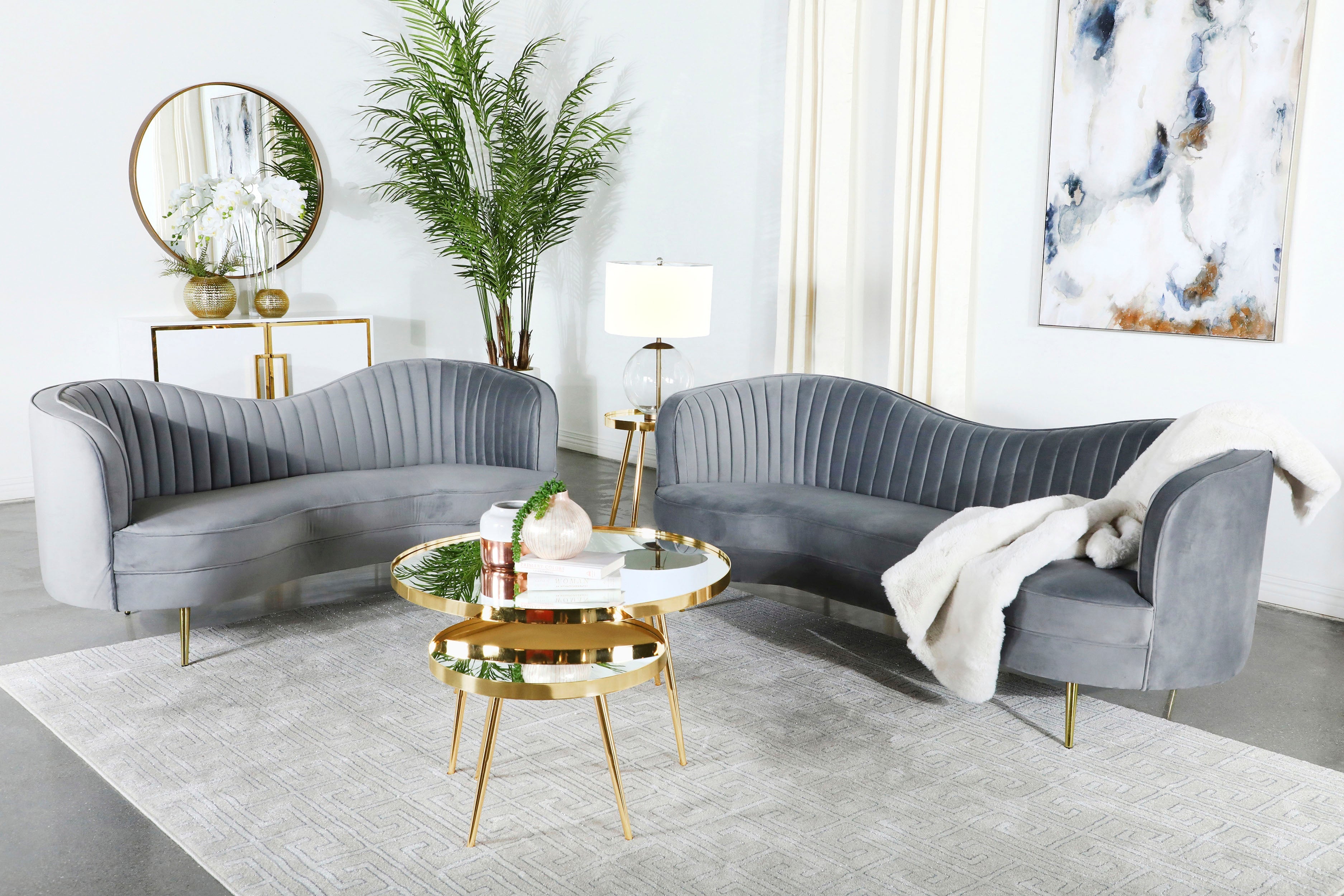 Ellorie Upholstered Curved Sofa Set Beige