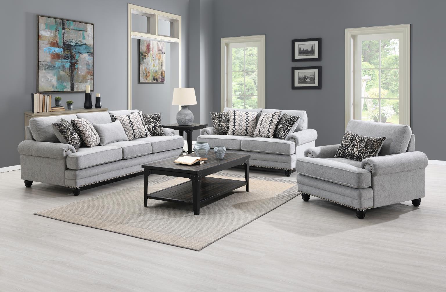 Nolan Upholstered Sofa Set Charcoal