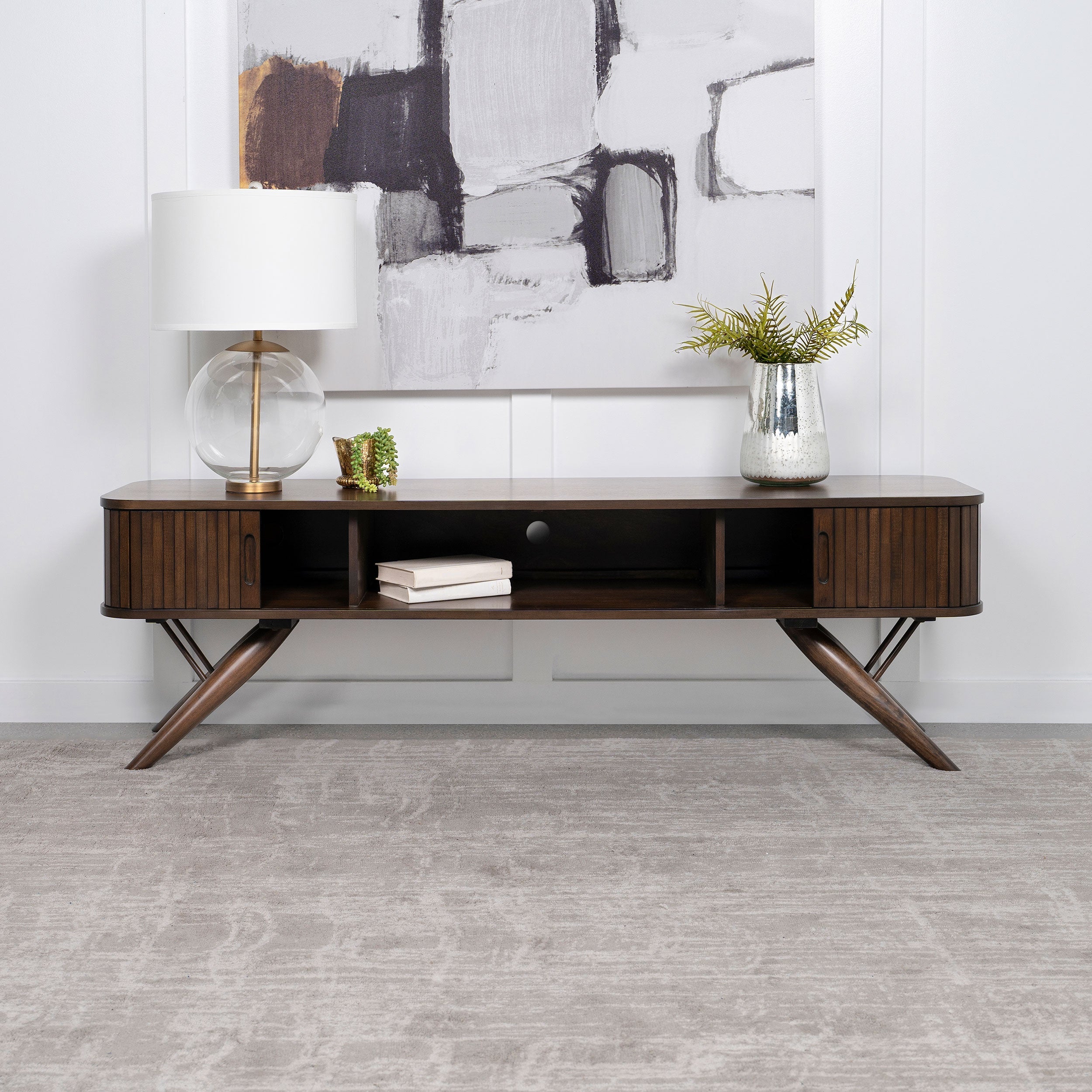Valna Wood 71-inch TV Stand with Sliding Doors Walnut
