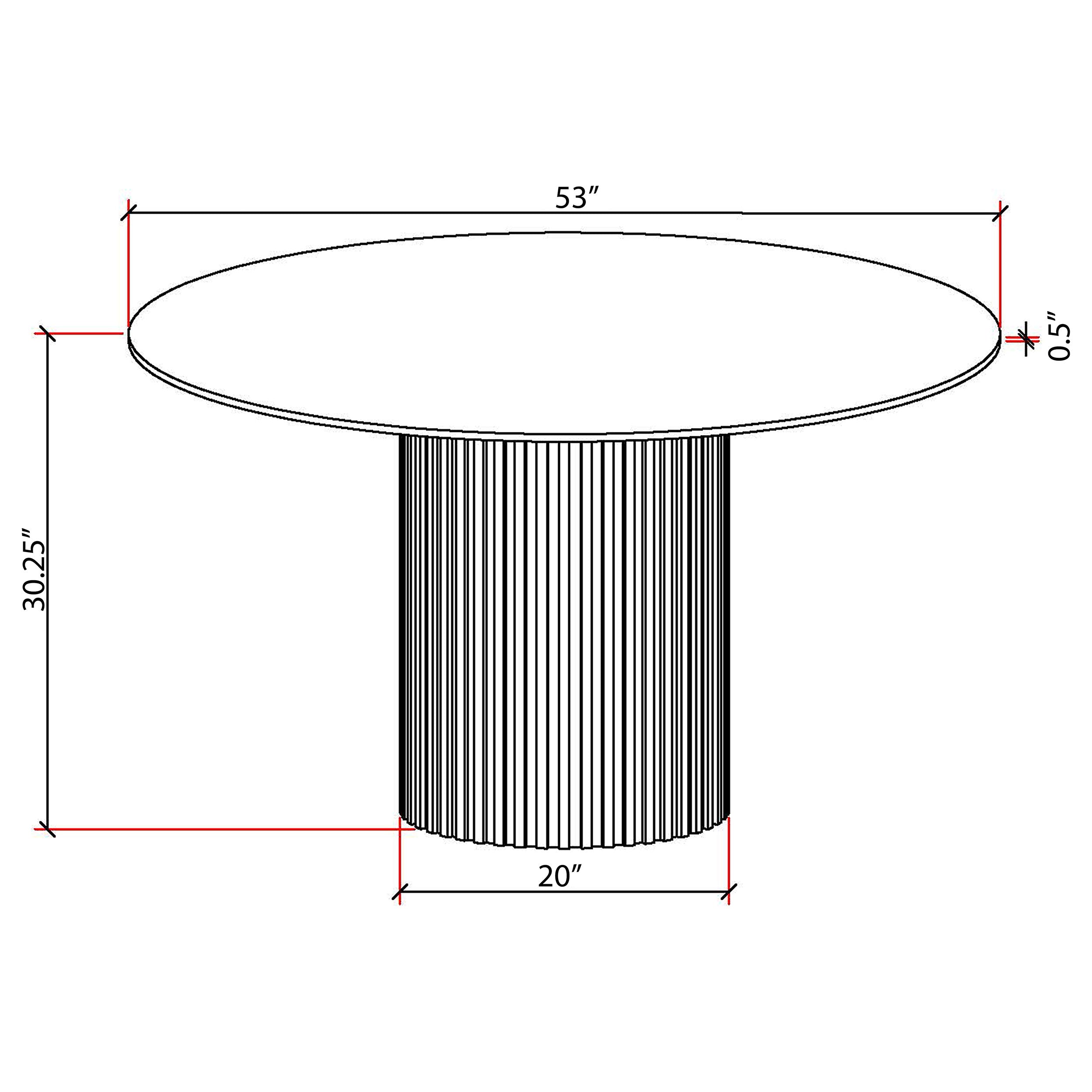 Dining Table: Width: 53.00, Depth: 53.00, Height: 30.25, Weight: 144.10
