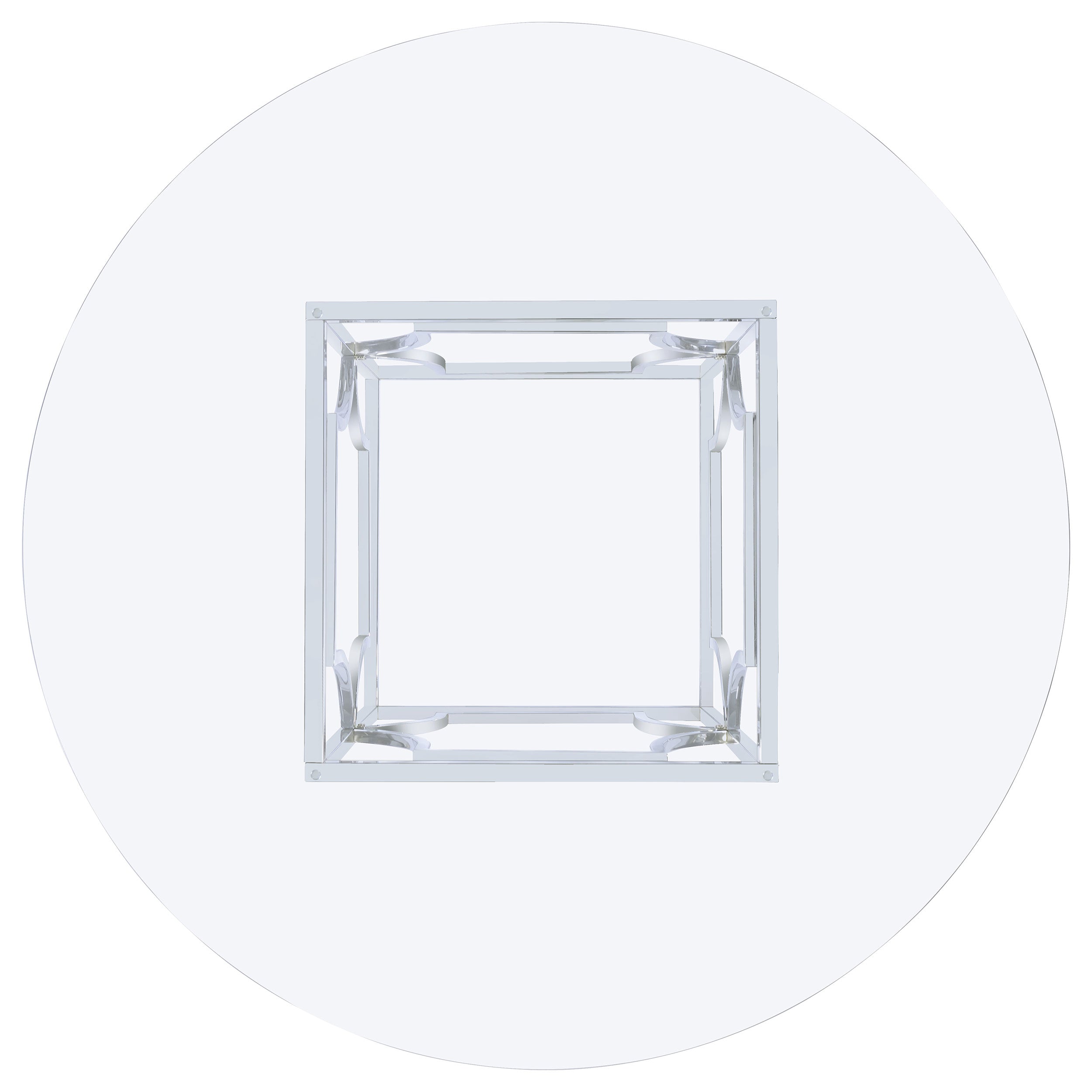 This round dining table creates a refined focal point with its clear tempered glass top and artful geometric base. The sculptural metal frame features intersecting curves and angles, electroplated in a high-shine finish for a bold, contemporary effect. Its open design keeps the space light, while the tempered glass adds a durable, easy-care surface for everyday use or entertaining.